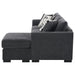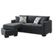 Refresh your living room or den with the contemporary style and easy versatility of a modern sleeper sectional sofa. Lending flexibility to your space, it boasts a chaise lounge for easy relaxation and expands to create a bed when overnight guests arrive. Its soft, inviting upholstery complements foam cushions and spring decking to create excellent support. Gently rounded track arms add a touch of character to a streamlined silhouette and block feet create stability. Four accent pillows add geometric prints to the ensemble, perfect for a contemporary living space.