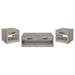 Create a cohesive look in your living space with this rustic coffee table set. Featuring a weathered gray wood-look finish, the set is crafted with engineered wood and scratch-resistant veneer for durability. Each piece includes clean lines, spacious storage drawers with bold black metal handles, and open shelves for additional display or storage. This set blends rustic charm and functionality, making it ideal for casual and modern interiors alike.