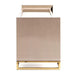 AICO Carmela Media Cabinet in Shimmer Ivory LFR-CRMA081-141. The finishing touch to your living room. This stunning table features a shimmering ivory finish that perfectly complements your living room and a mirrored top in a unique 4 section pattern that adds a touch of intrigue and sophistication. The legs of the table are finished in titanium gold. This cocktail table is perfect for entertaining guests, holding drinks and snacks, or simply adding a touch of style to your living room. Pair it with the rest of the Carmela collection for a complete look that exudes refined romance and understated elegance. This cocktail table will take center stage in your living room.