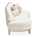 AICO Furniture Camellia Field Asymmetrical Sofa in Caramel 9090816-CNSLK-134. The Camellia Field Asymmetrical Sofa combines dramatic curves with a touch of floral artistry. Wrapped in soft velvet upholstery, the front offers an inviting seat, while the back is adorned with a vibrant camellia pattern, making it a centerpiece from every angle. Elegantly paired with three decorative accent pillows, this sofa balances comfort with a statement of refined design.