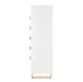 AICO Furniture Palm Gate 6 Drawer Chest in Cloud White N9086070SA-108. The Palm Gate six-drawer chest offers ample storage without compromising on style. Its acrylic body adorned with gold accents and velvet-lined drawers is a testament to its tasteful design.