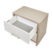 - The drawers are equipped with self-closing guides, and the bottoms are lined with velvet.