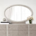 • Mirror is oval-shaped and sits atop the dresser