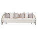 AICO Malibu Crest Sofa in Chardonnay N9007816-CLDWH-822. Design your home for romance. The Malibu Crest Sofa features an exquisitely curved body, V-notch arms finished in Chardonnay, and a softly textured seat certain to brighten your home atmosphere instantly!
