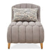 AICO Furniture St.Charles Chaise in Dove Gray 9088841-STRTS-803. The Saint Charles Chaise invites you to recline in luxury. Its form, an elegant curve upholstered in chenille fabric, offers a sumptuous retreat. The piece is designed with a unique, sculpted silhouette, including a plush, channel-stitched seating that wraps around to cradle you in comfort, making it a striking addition to any room.