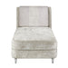 AICO Lanna Armless Chaise in Storm Silver Mist NLRU-LANA841-STM-823. Tailored details and soft neutrals make this Lanna Chaise perfect for mixing, matching, and everyday lounging. With a rich chenille fabric, luxury cushions, and a velvet honeycomb pattern backrest pillow, this piece both elevates and embraces your home style. A new look into modern luxury, Lanna is defined by contoured frames, smooth platinum accents, and contrasting neutral patterns. Designed with the perfect mix of eclectic and complementary, this collection is the next level of chic brilliance.