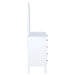 Lighten and brighten your bedroom storage ensemble with a modern ten-drawer dresser and mirror combination. In clean, fresh white, the set delivers abundant storage and organization with four smaller upper drawers and six larger drawers underneath. The mirror on top adds a finished look, while offering reflectivity and airy ambiance. It shows off a double bowed front silhouette, augmented with the intriguing texture of natural rattan drawer fronts that enhance its casual, coastal character. Petite round knobs and tapered legs complete the look with refined, restrained elegance. Key Features: • Coastal details highlight a modern ten-drawer dresser and mirror to bring compelling, fresh style • Crisp white finishing complements poplar and engineered wood, with rattan accents to create texture • Four small and six large drawers create ample storage for accessories, clothing and personal effects • A framed mirror adds dimension while rattan drawer fronts create approachable style and texture • Top drawers include black felt lining, adding protection for delicate items