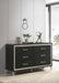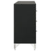 Accentuate surrounding decor with the sophistication of a modern six-drawer dresser. Designed for ample storage, it features a refined look with spacious drawers ideal for everything from clothing to accessories and linens. Its bold black finish is crisp and chic, complemented perfectly with rich, cool chrome trim that gleams in the light. Decorative legs have hairpin inspired style, offering a stylish touch of vintage energy. Long bar pulls complete the look with polished perfection. Key Features: • Chic touches bring glamour and elegant flair to a modern six-drawer dresser • Bold black finish is crisp and clean in a sophisticated bedroom setting • Cool chrome finish trim highlights the front of the case, long bar pulls and decorative legs • Drawers add abundant storage for clothing and accessories to help keep a tidy bedroom • Drawers includes English dovetail joinery that ensures utmost quality of construction