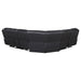 An all-in-one venue for entertainment delivers convenience and beauty in the three-piece power sectional set. Modern design features and a sleek rounded silhouetting suits style needs and assures inviting comfort for extended periods of watching movies and sports. Gorgeous leatherette upholstery enriches any living room or media room, embellished with pillowy foam filling and batting arranged carefully through tufting and channeling. Sinuous spring seating and attached seat and back cushions form individual luxury as seats feature power reclining for smooth, easy positioning. Keep beverages handy in two cup holders and stash remotes and accessories in a flip-top console.