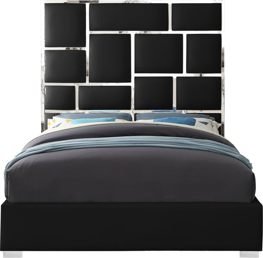 Make this Milan black faux leather queen bed the center showpiece in your bedroom makeover. This elegant bed has a bold look with its super-tall he...