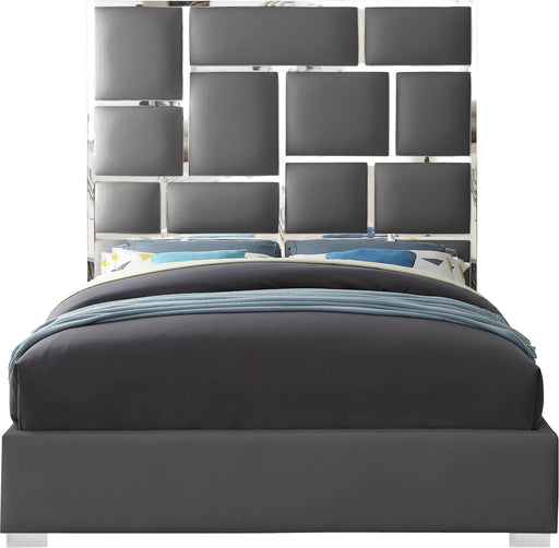 Make this Milan grey faux leather queen bed the center showpiece in your bedroom makeover. This elegant bed has a bold look with its super-tall hea...