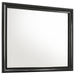 Encourage a glam vibe in your refined bedroom with a modern four-piece bedroom set. Centering on a stylish bed with an upholstered headboard and low footboard, the set includes a two-drawer nightstand for easy bedside storage and display space. A seven drawer dresser and mirror complete the set, adding diamond-like trim across its face that catches the light and offers a sophisticated touch. Bracket feet add a touch of dimensionality and movement to each piece and jewel-like bar pulls add intriguing sparkle. A cool white finish is textured, while white finish trim is smooth, creating a touch of textural contrast that add engaging style.