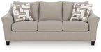 Subtle in color, big on style possibilities. This sofa is a transitional take on everyday comfort. Its soft-to-the-touch upholstery keeps you cozy as you lounge, and the neutral hue is a perfect canvas for adding your own fashionable flair. Tidying up after kids or pets? It's easy to clean under and between the removable cushions.