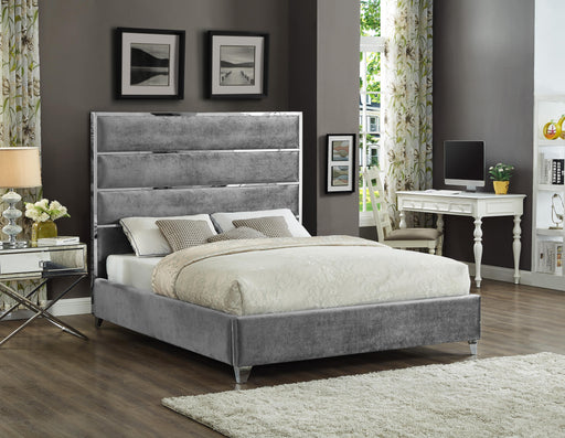 MeridianYou'll fall fast and hard for the contemporary beauty of this Zuma Grey Velvet Queen Bed. The sleek velvet upholstery is not just supple and smooth...