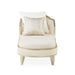 - Rail, armrests, trim, and feet are finished in Chardonnay