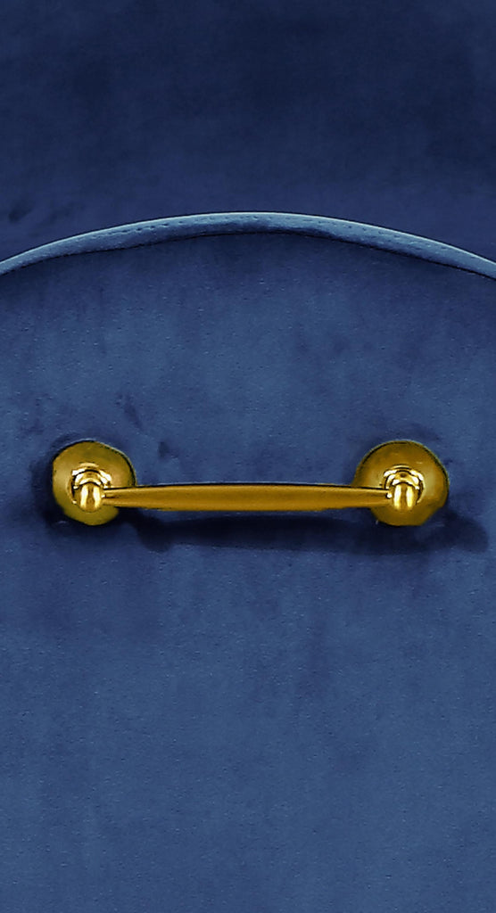 Rest your bones on this beautiful Owen Navy Velvet Bench. This handsome bench has an elegant demeanor that will not escape the attention of all who enter your space. The sophisticated polished gold legs have a ball design for a distinctly chic appearance, and the bench is upholstered in rich velvet for a soft and supple feel against your skin. Position it at the end of the bed as a handy seat, or use it in an entryway to give people a spot to sit and put their shoes on before heading out the door.