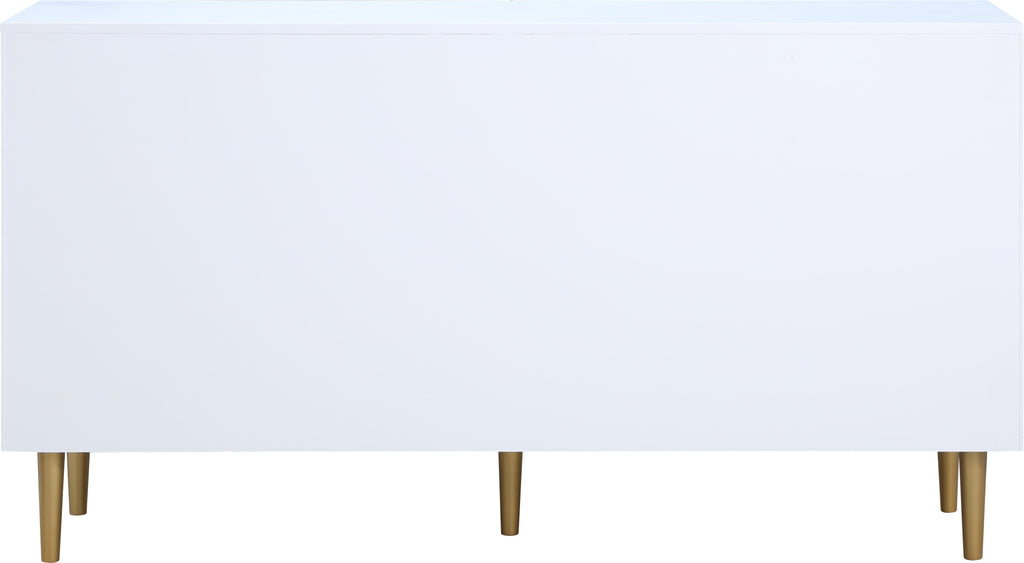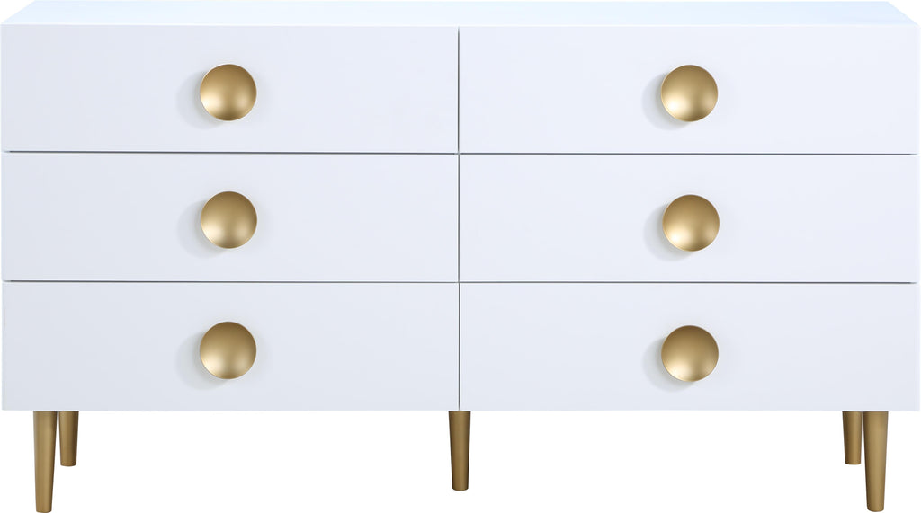 Watch your d?�cor cascade to new heights when you bring home this Zayne dresser. It features a rich white finish that sets an instant contemporary vibe in your space. Its brushed gold metal legs and handle add a sophisticated slant to the piece���s design, ensuring it���s a simple and easy fit with other modern pieces. Pair this unit with other items in the Zayne collection for a seamless presentation in your room.